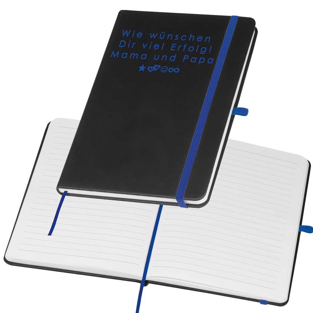 A5 Notizbuch mit farbiger Gravur | Kunstlederumschlag | 192 linierte Seiten | farbiges Lesebändchen | Personalisiert | Notizbuch liniert-Blau