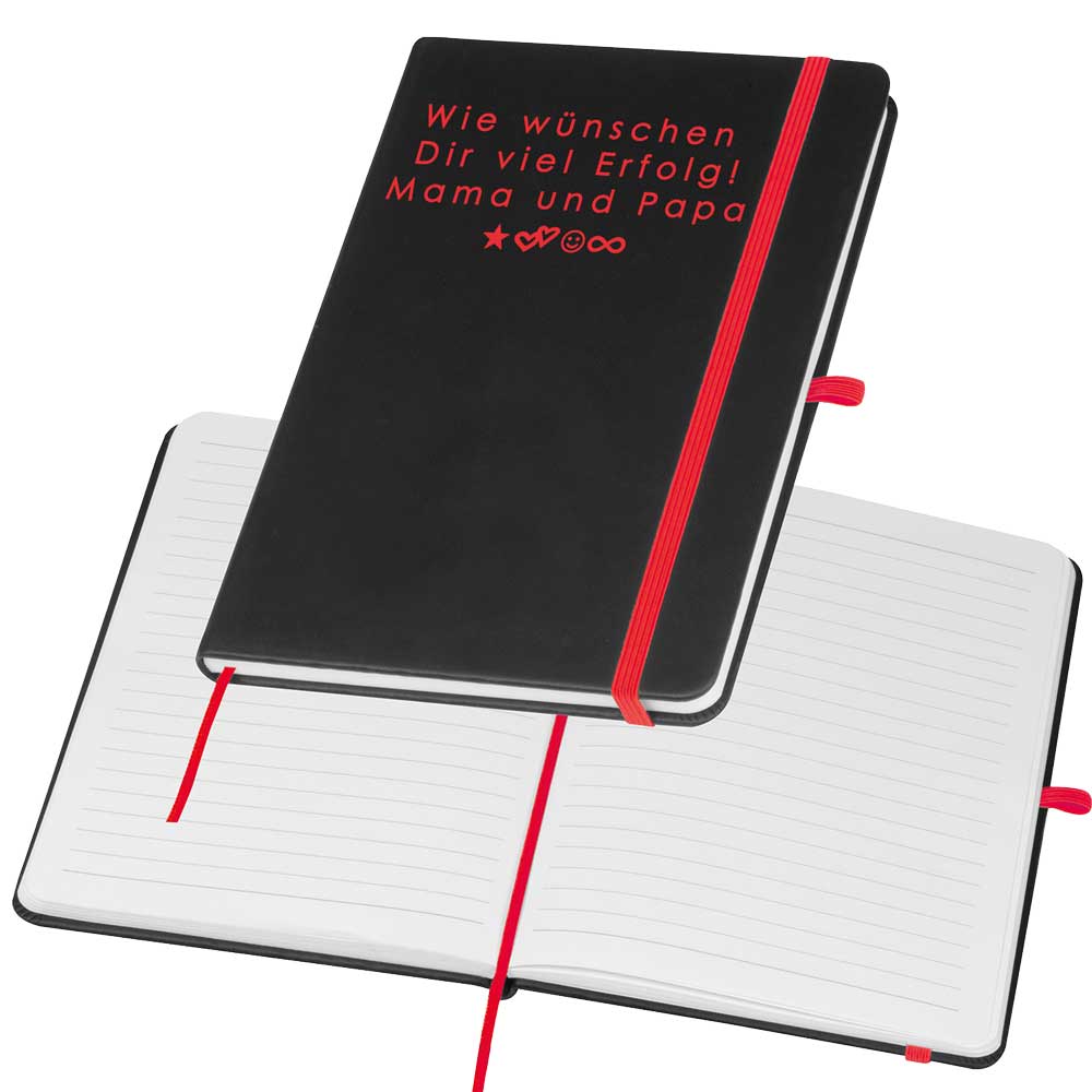 A5 Notizbuch mit farbiger Gravur | Kunstlederumschlag | 192 linierte Seiten | farbiges Lesebändchen | Personalisiert | Notizbuch liniert-Rot