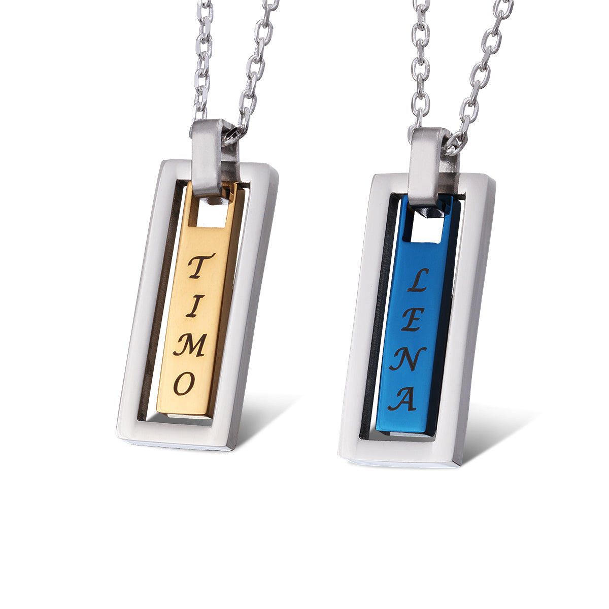 Wie auf dem Bild zu sehen können zwei Namen, jeweils auf einen Anhänger, eingraviert werden.
