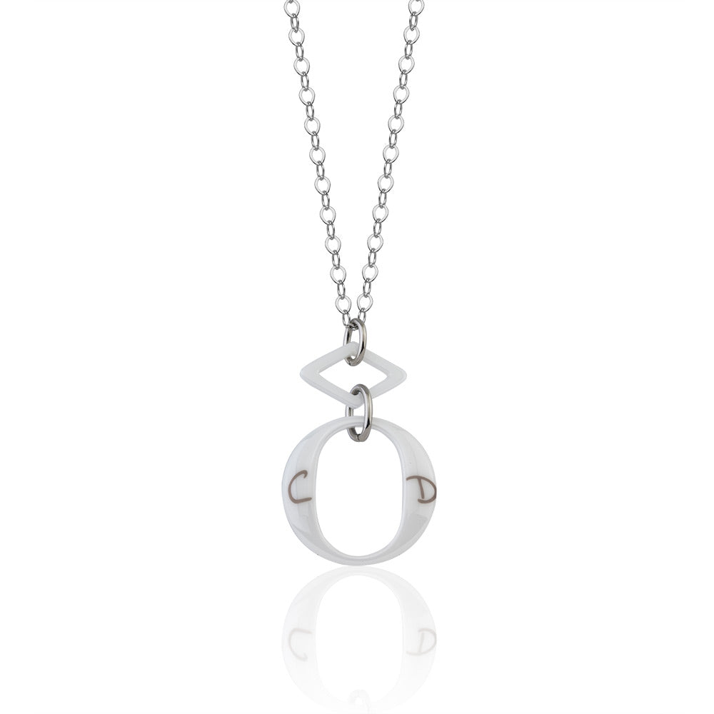 Schöner Anhänger in Weiß mit Edelstahlkette. Nur Initialen möglich.