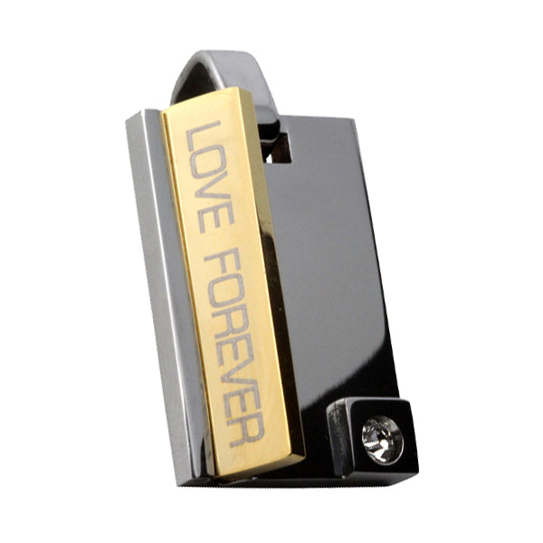 Der Anhänger ist rechteckig gehalten. Die Gravur  "Love Forever" ist Bestandteil des Anhängers.