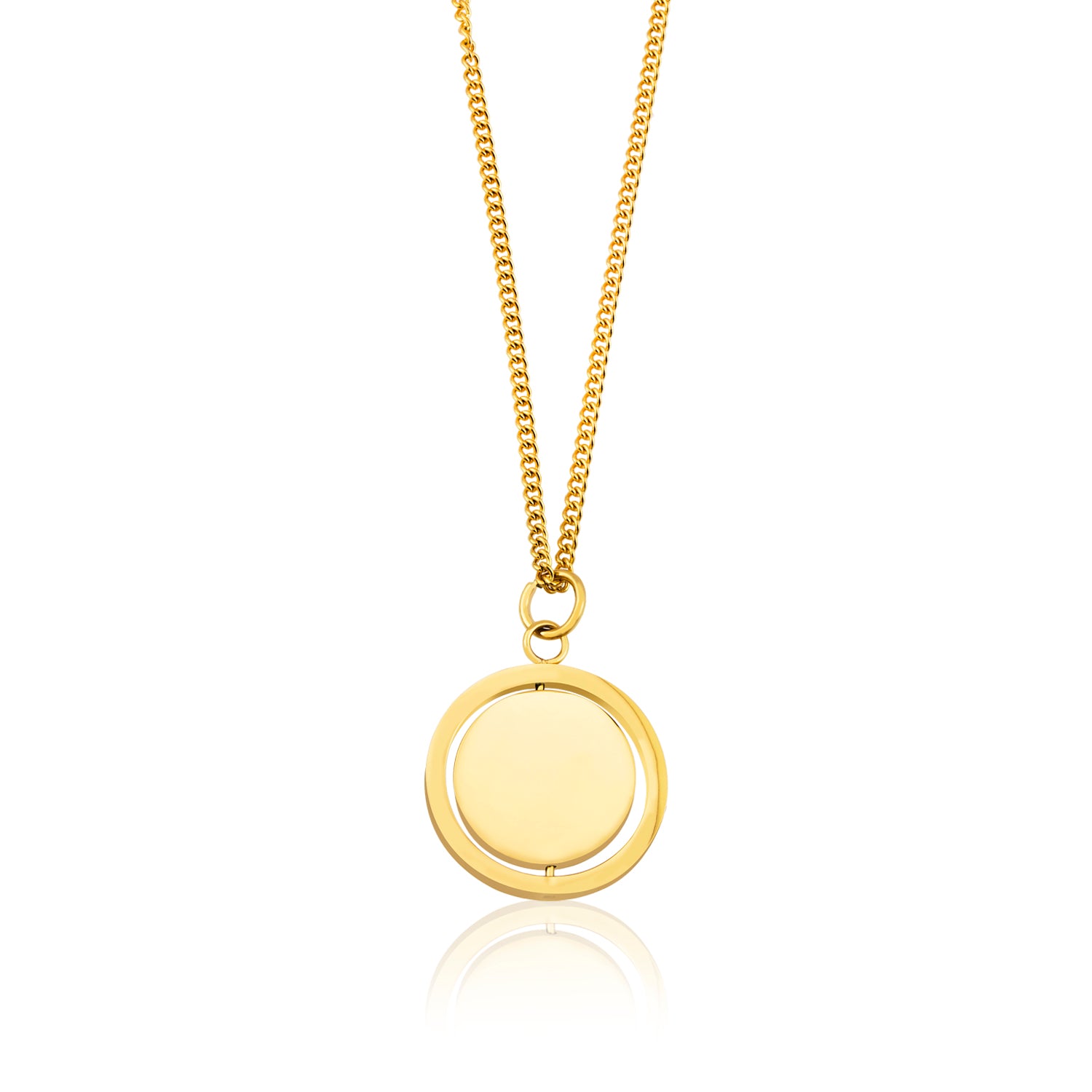 Eleganter Kettenanhänger aus Edelstahl mit Gravurplatte. Pendelanhänger mit drehbarer Gravurfläche.