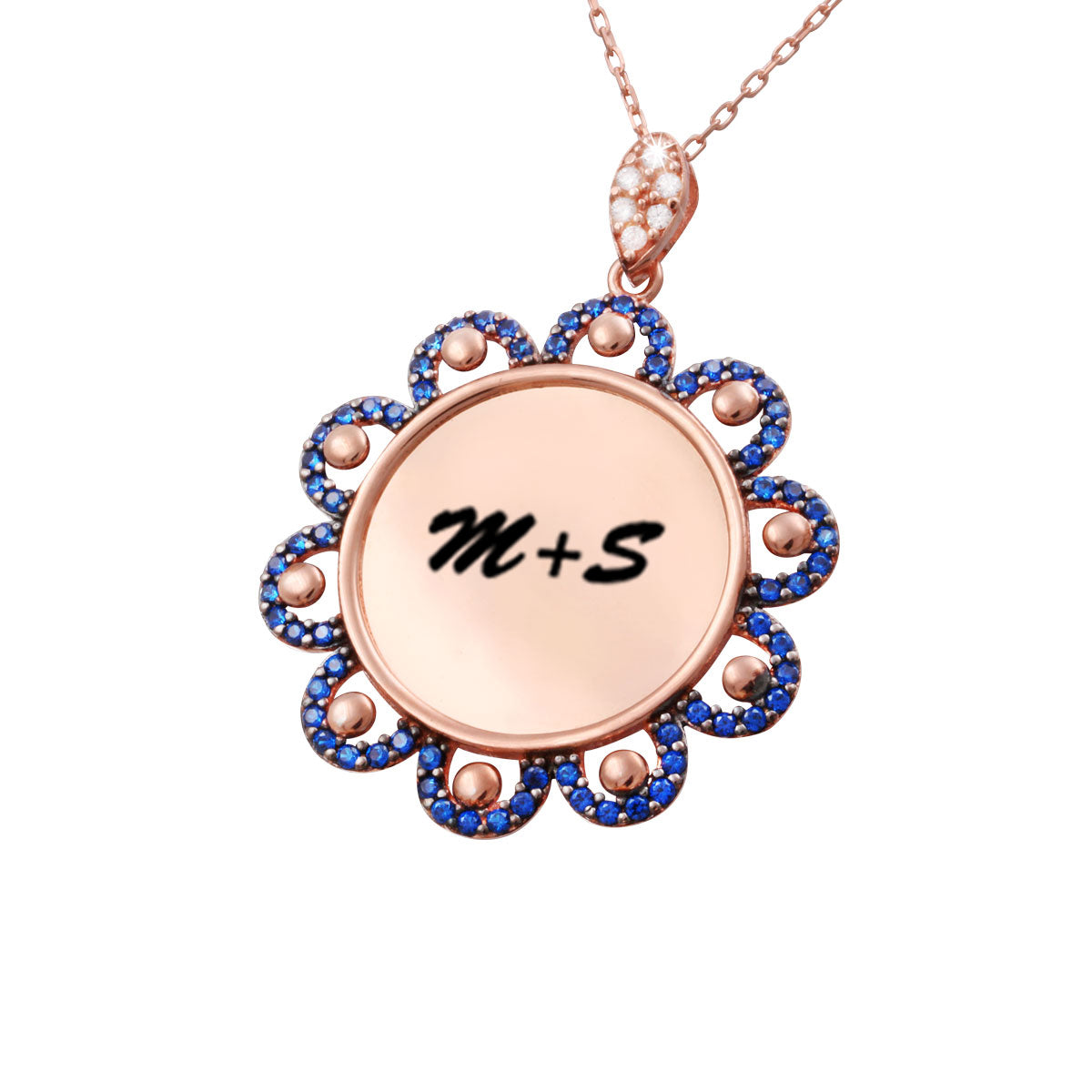 Der Anhänger hat die Form eines Kreises und ist mit vielen Zirkonia verziert.