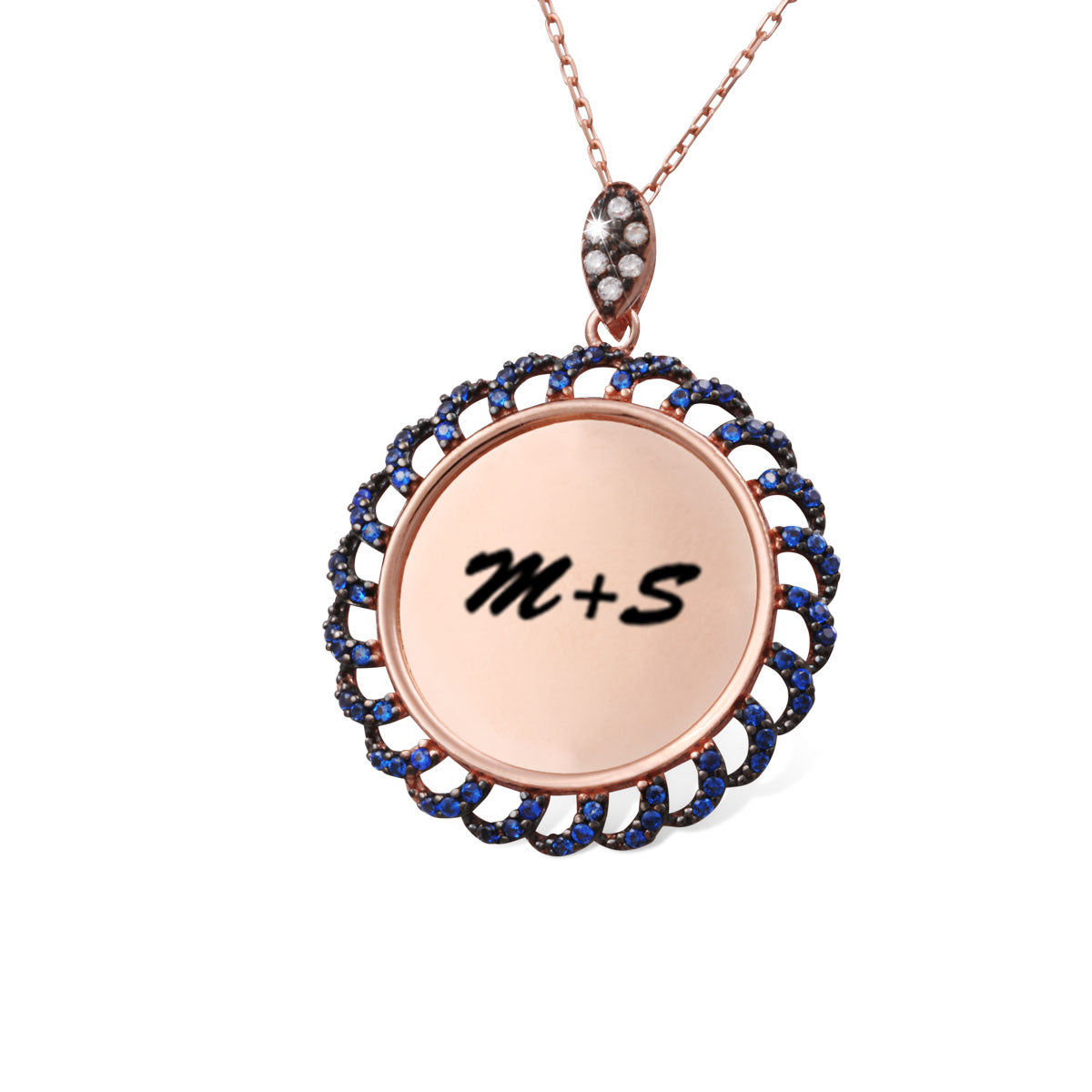 Der Anhänger hat die Form eines Kreises und ist mit vielen Zirkonia verziert.
