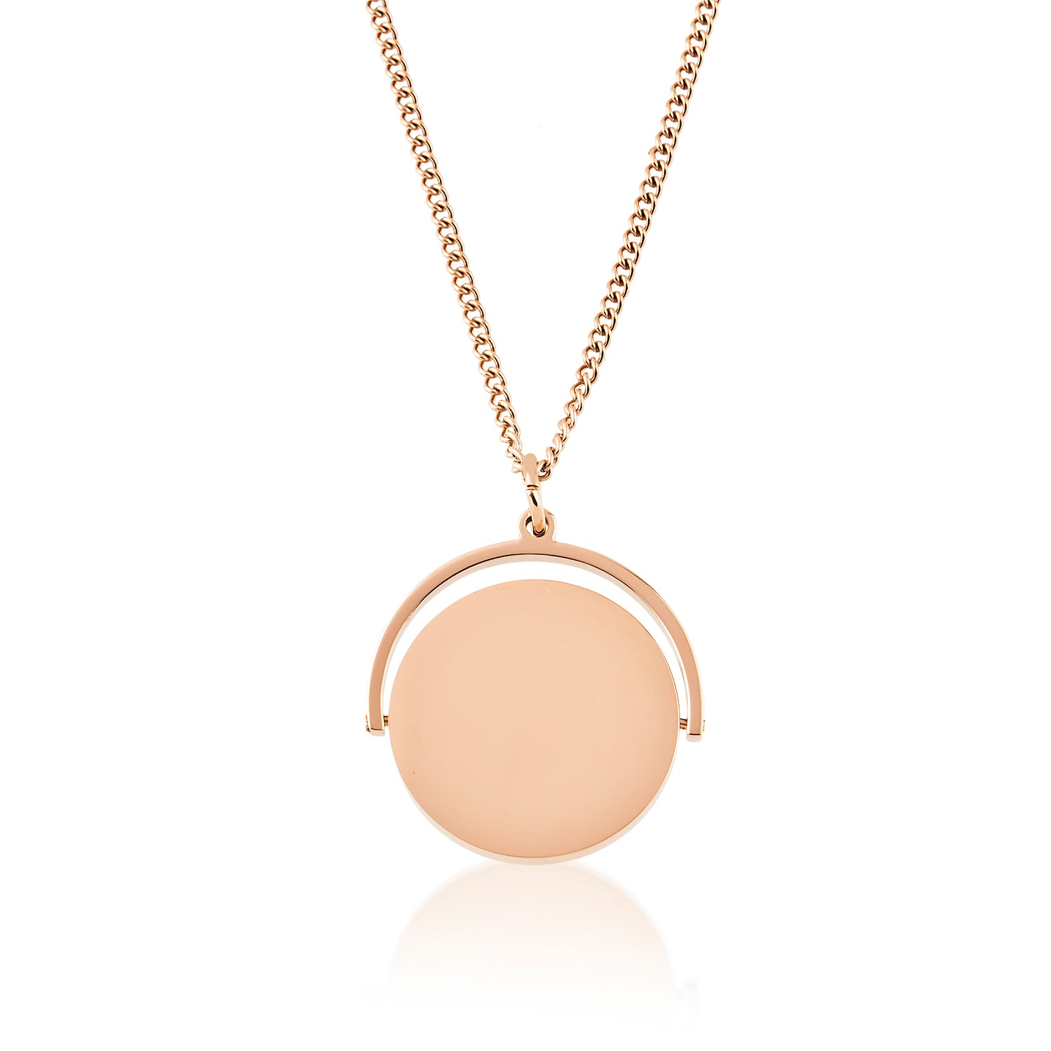 Eleganter Kettenanhänger aus Edelstahl mit Gravurplatte. Pendelanhänger mit drehbarer Gravurfläche.