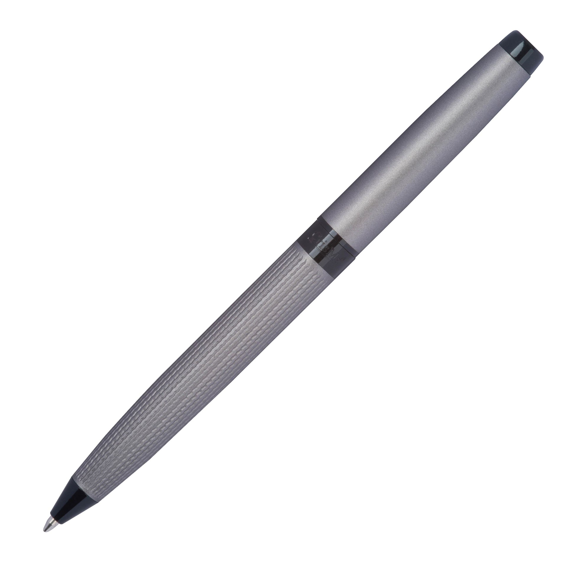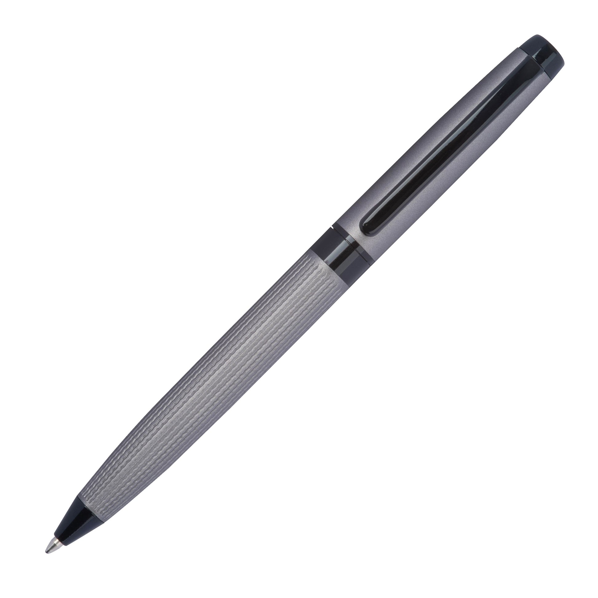 HOCHWERTIGES DESIGN: Eleganter Drehkugelschreiber aus Edelstahl in mattem Schwarz mit strukturiertem Schaft und praktischem Clip