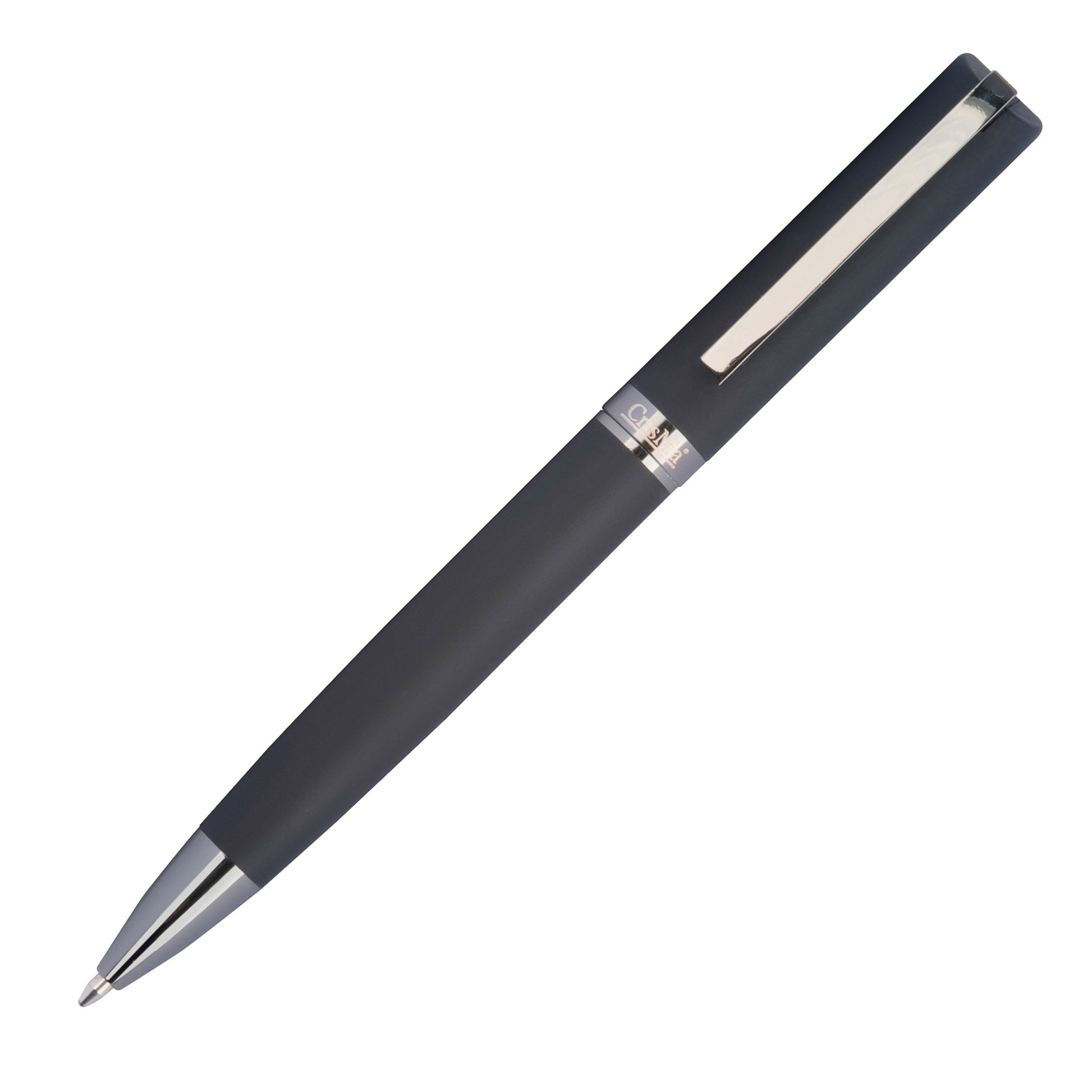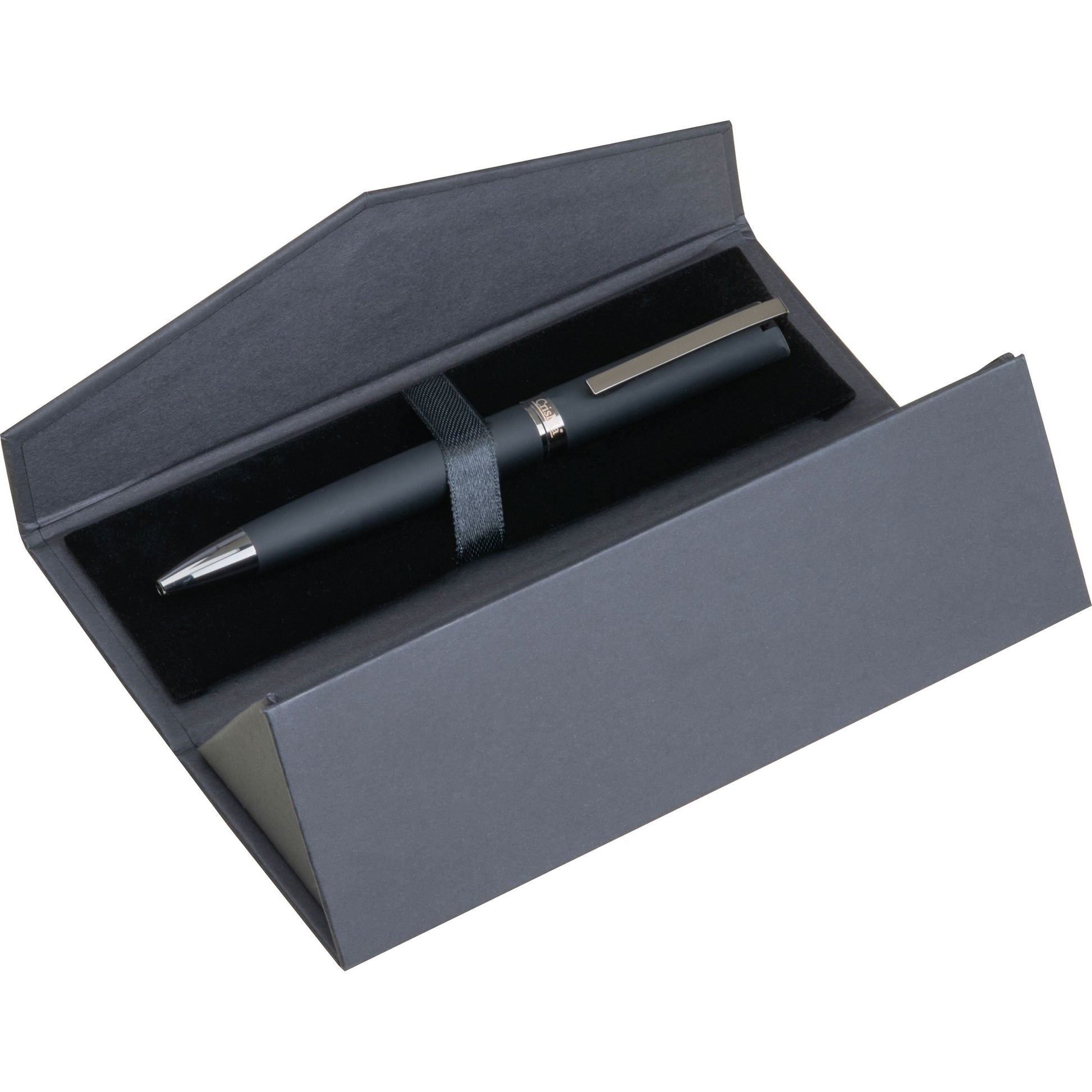 CrisMa Kugelschreiber aus gummierter Oberfläche mit Gravur | Edelstahl, Messing | in schwarzemn Etui inkl. Wunschgravur | blau schreibende Großraummine | mattes Design