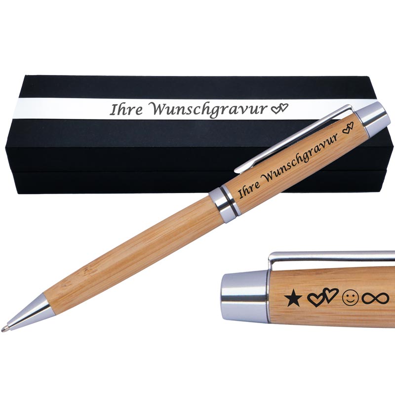 Drehkugelschreiber aus Bambus mit Gravur | blau schreibend | Kugelschreiber personalisiert |
