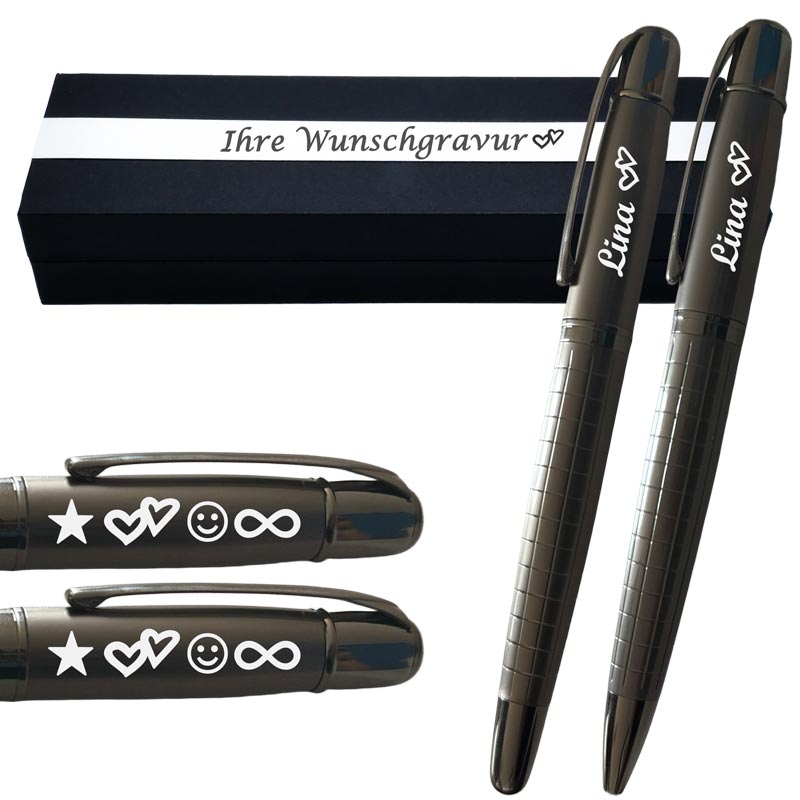 Edles 2er Schreibset in edler Gun-Metal-Optik – Mit Wunschgravur, Symbolen & elegantem Muster – Persönliches Geschenk