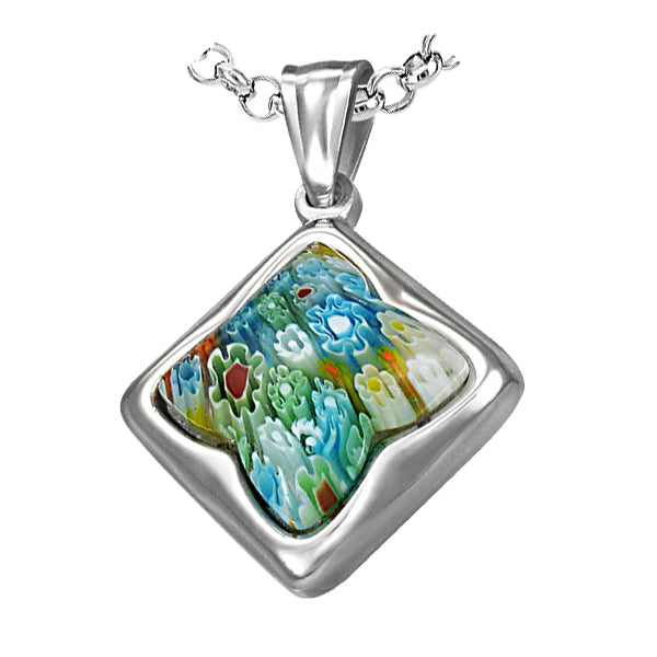 Der schlichte aber dafür elegante Anhänger  ist  vorne  mit einem buntem Stein versehen.