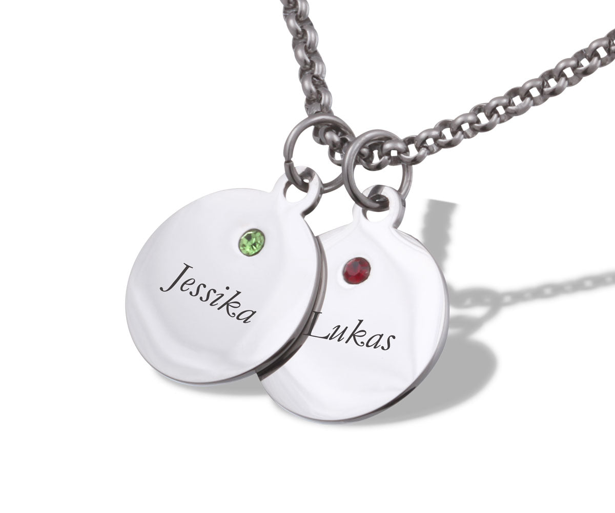 Es können zwei Namen, jeweils auf eine Scheibe, eingraviert werden.