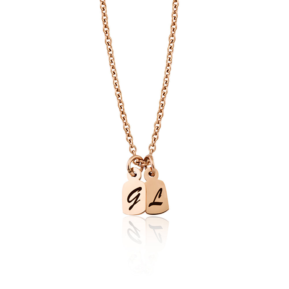Ein Kettenanhänger mit kostenloser Wunschgravur.Die dazugehörige Ankerkette ist 45 cm lang. Der Anhänger und die Kette wurden durch die IPR ( Ion Plating Rosegold) Beschichtung vergoldet.