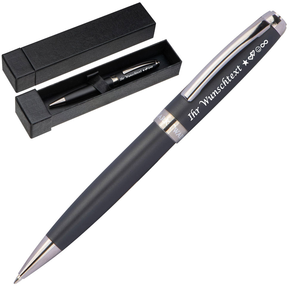 Unser exklusiver Mark Twain Kugelschreiber aus Metall – eine elegante Schreiblösung mit hochwertigen Details! Dieser Kugelschreiber verfügt über einen matten Schaft, Applikationen aus Gun-Metal und eine hochwertige Parker-Mine aus Metall. Exklusives Design: Der Kugelschreiber zeichnet sich durch ein exklusives Design aus, das Stil und Eleganz vereint. Matte Oberfläche: Der matten Schaft verleiht dem Kugelschreiber eine moderne und ansprechende Optik. Gun-Metal Applikationen: Die Applikationen aus Gun-Metal setzen hochwertige Akzente und betonen das edle Design. Parker-Mine aus Metall: Die hochwertige Parker-Mine aus Metall sorgt für ein angenehmes und präzises Schreiberlebnis. Ihr Wunschtext wird auf den Kugelschreiber graviert, um eine exklusive und personalisierte Präsentation zu gewährleisten. Hochwertige Kugelschreiber sind nicht nur praktische Schreibutensilien, sondern auch beliebte Geschenke. Besonders ansprechend sind personalisierte Kugelschreiber, die mit einer Gravur versehen sind. Diese individuellen Schreibgeräte sind nicht nur funktional, sondern auch einzigartige Accessoires. Ein Kugelschreiber Set bietet eine vielfältige Auswahl an Farben und Stilen, sodass für jeden Anlass der passende Stift dabei ist. Von klassischem Blau bis zu eleganten graviertern Kugelschreibern gibt es eine große Auswahl, um den persönlichen Geschmack zu treffen. Auch Kulis sind eine praktische Alternative zum klassischen Kugelschreiber. Mit einer persönlichen Gravur werden sie zu einzigartigen Geschenken, die im Alltag immer wieder zum Einsatz kommen. Für eine besonders exklusive Note können auch Stifte mit Gravur oder personalisierte Stifte gewählt werden.