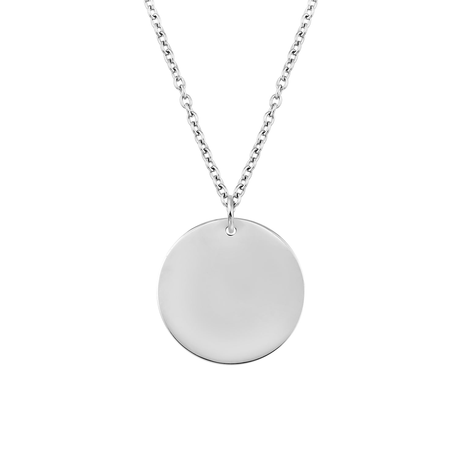 Schöner Anhänger aus Edelstahl mit einer kreisförmigen Gravurplatte.