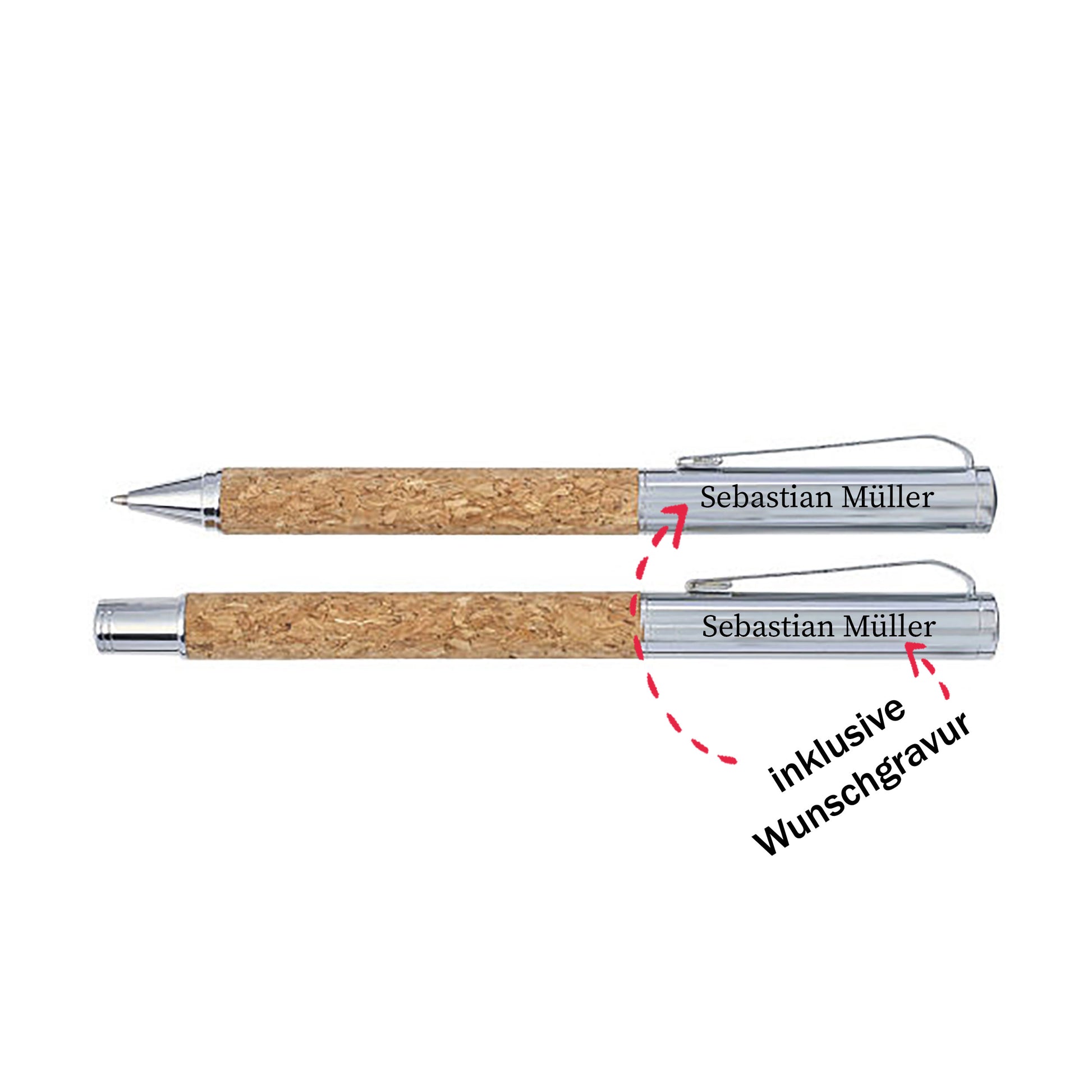• Schreibset 42 aus Kork und verchromten Metall, bestehend aus Kugelschreiber und Rollerball