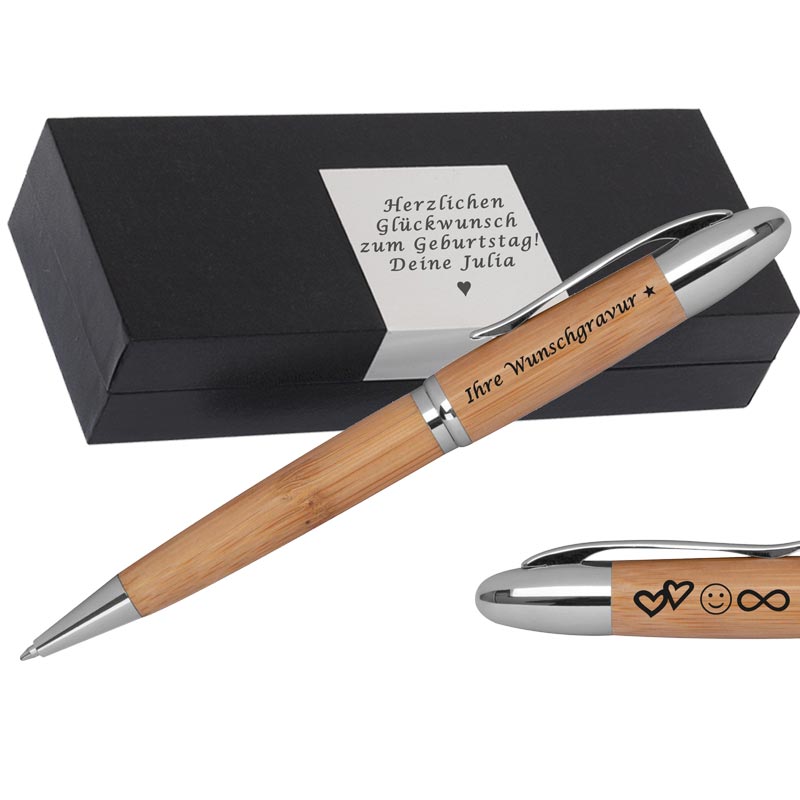 Kugelschreiber aus Bambus mit Gravur | blau schreibend | Kugelschreiber personalisiert |