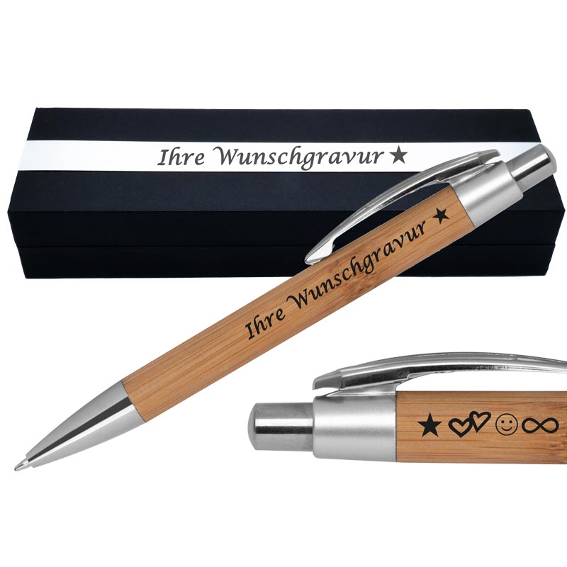 Kugelschreiber mit Gravur aus Bambus | blau schreibend | Kugelschreiber personalisiert |