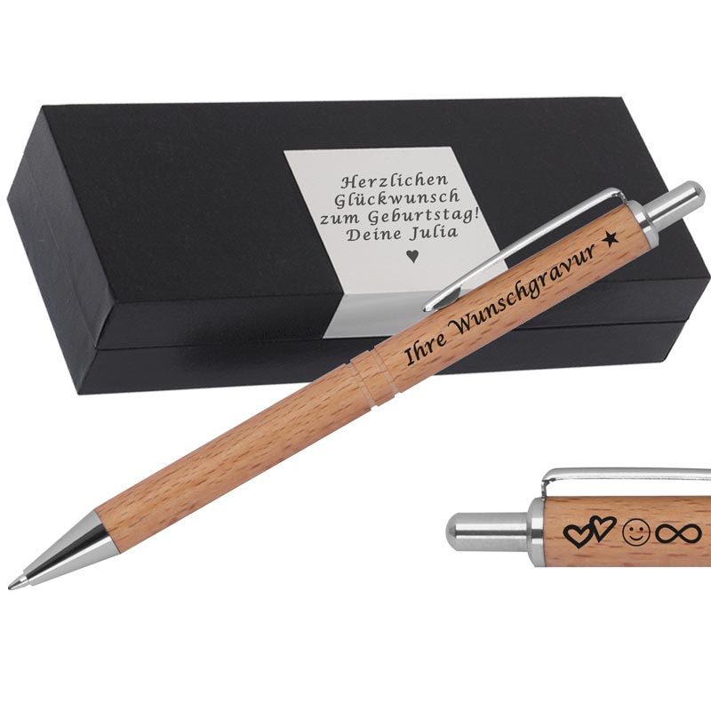 Kugelschreiber mit Gravur aus Holz | blau schreibend | Kugelschreiber personalisiert |