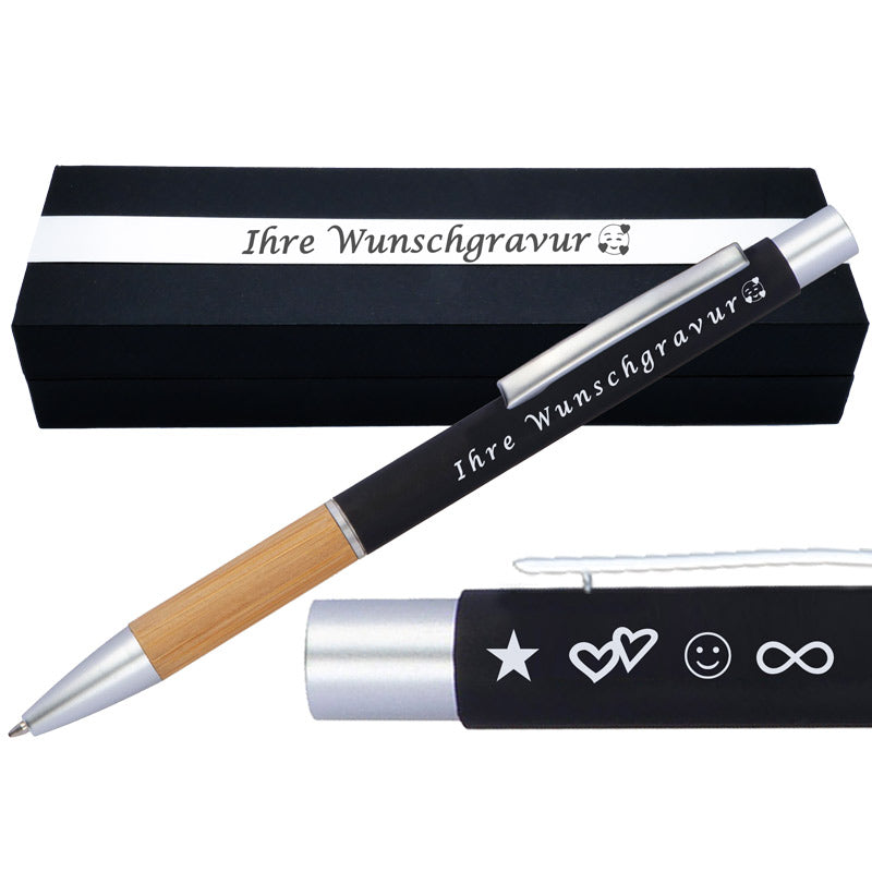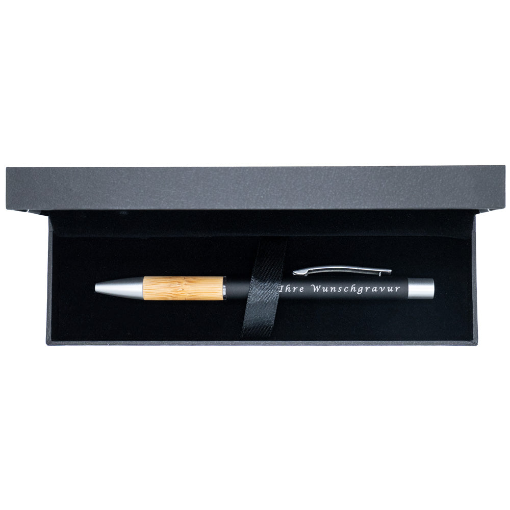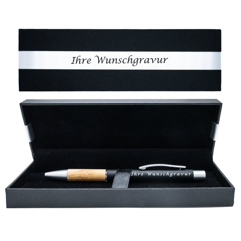 Kugelschreiber mit Gravur mit Bambusgriffzone | blau schreibend | Kugelschreiber personalisiert |