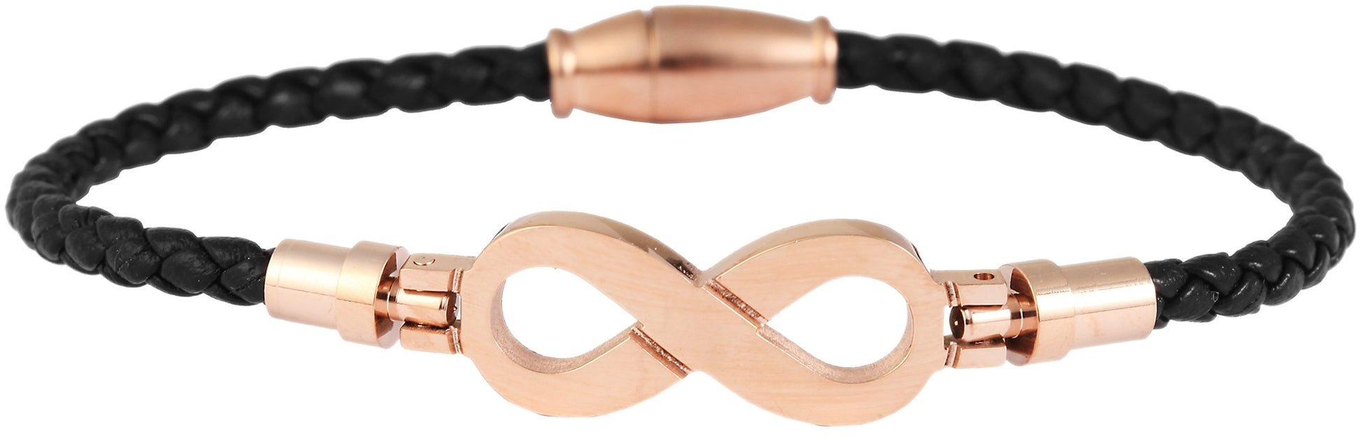 Ein geflochtene Echtlederarmband mit Unendlichkeitssymbol.