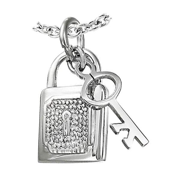 1 Kettenanhänger aus hochwertigem Edelstahl (Stainless Steel) in Form eines Schlosses.