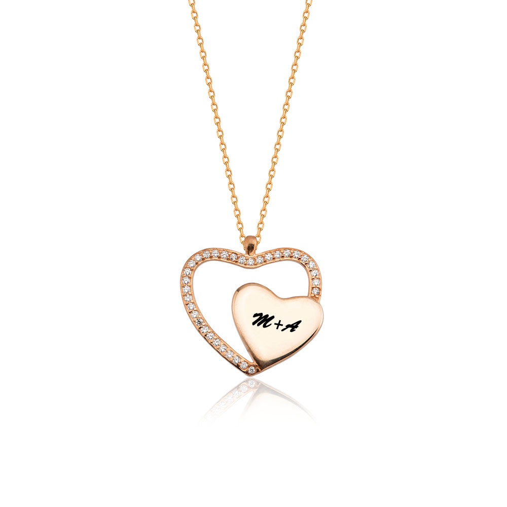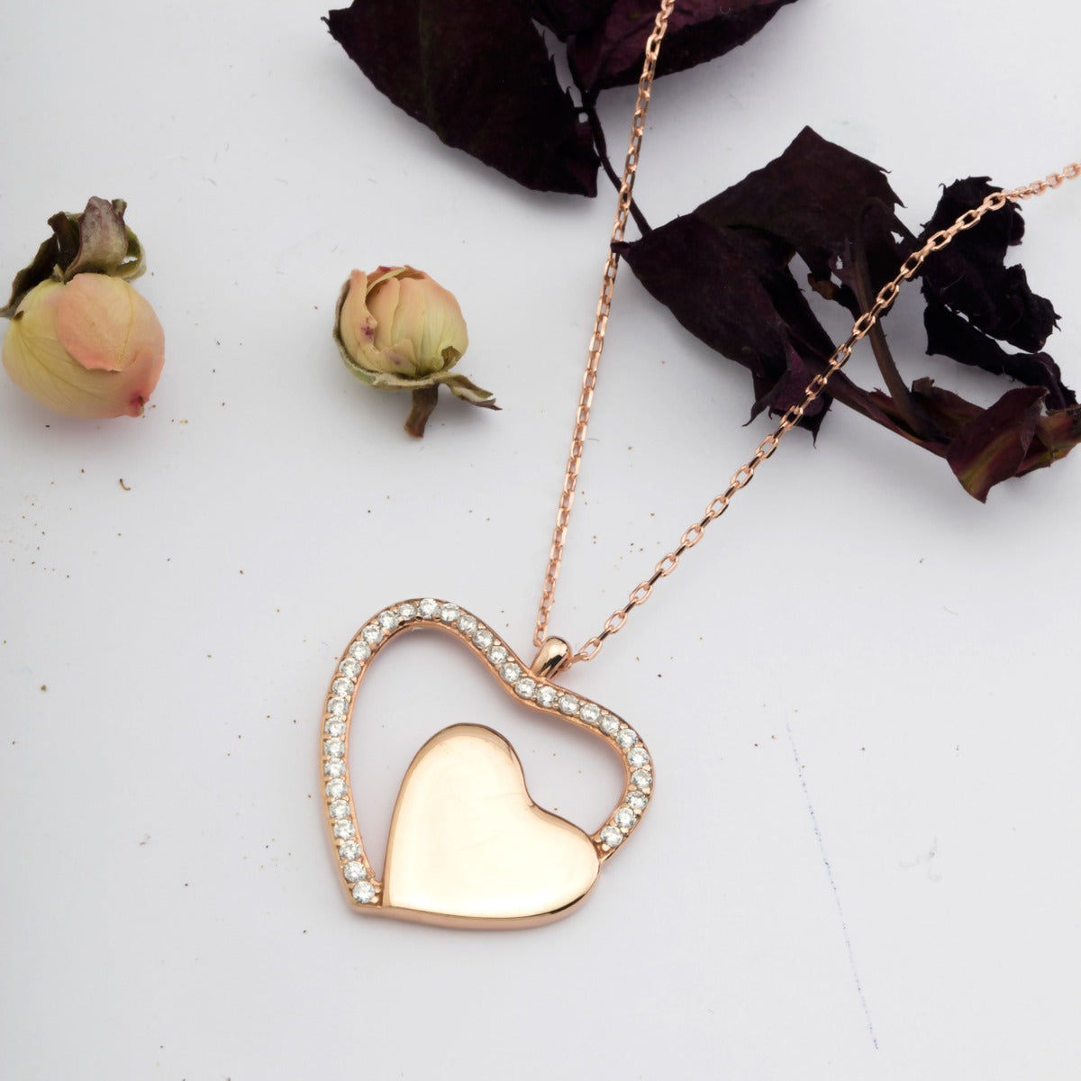 Der Anhänger hat die Form eines Herzens und mit vielen Zirkonia verziert.
