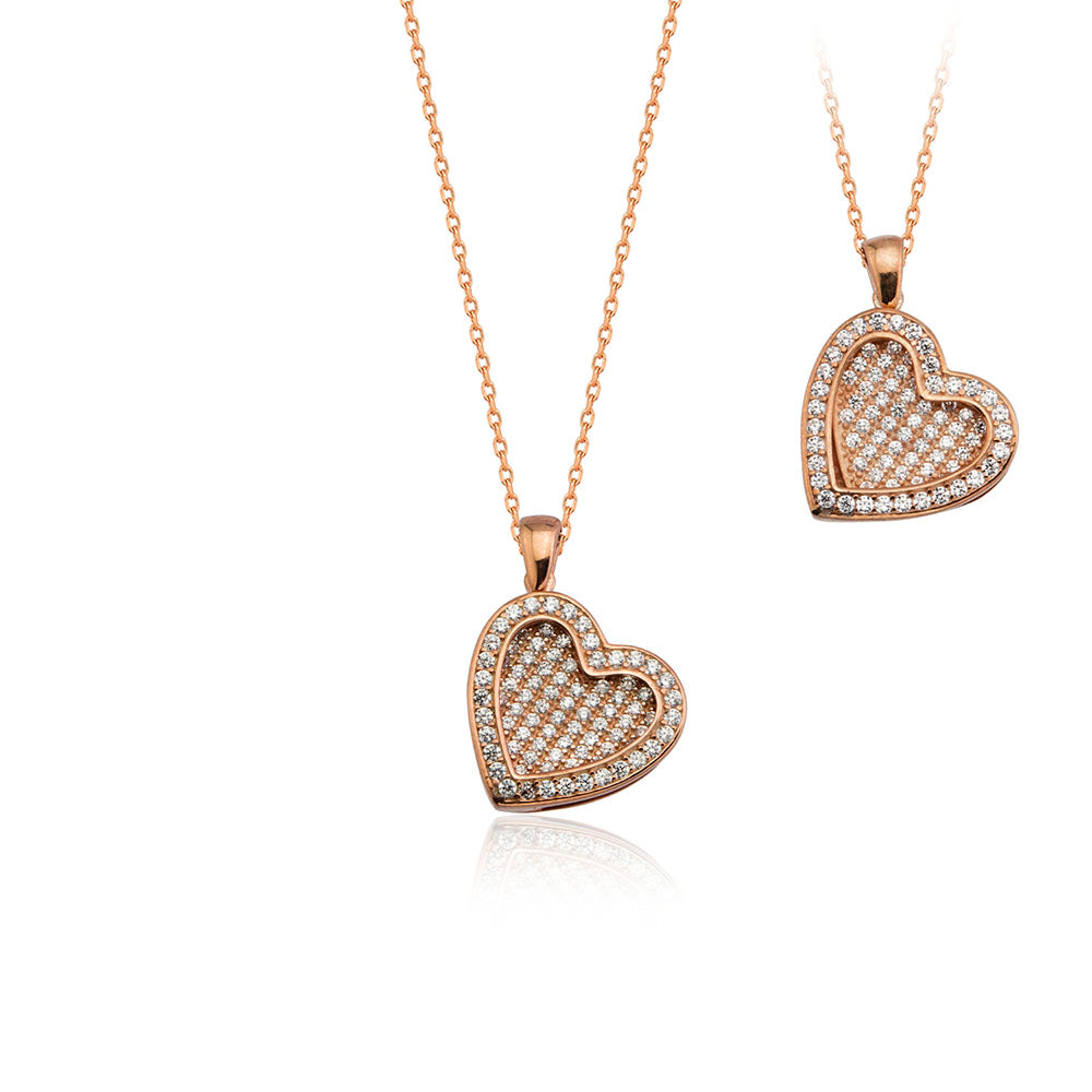 Der Anhänger hat die Form eines Herzens und mit vielen Zirkonia verziert.