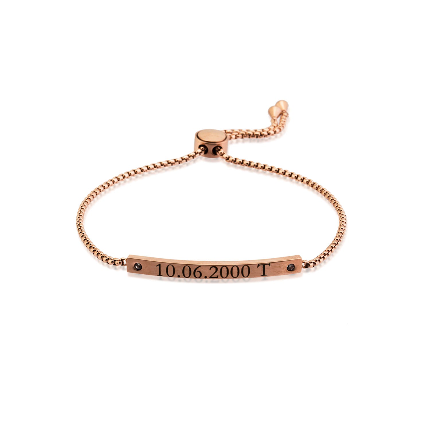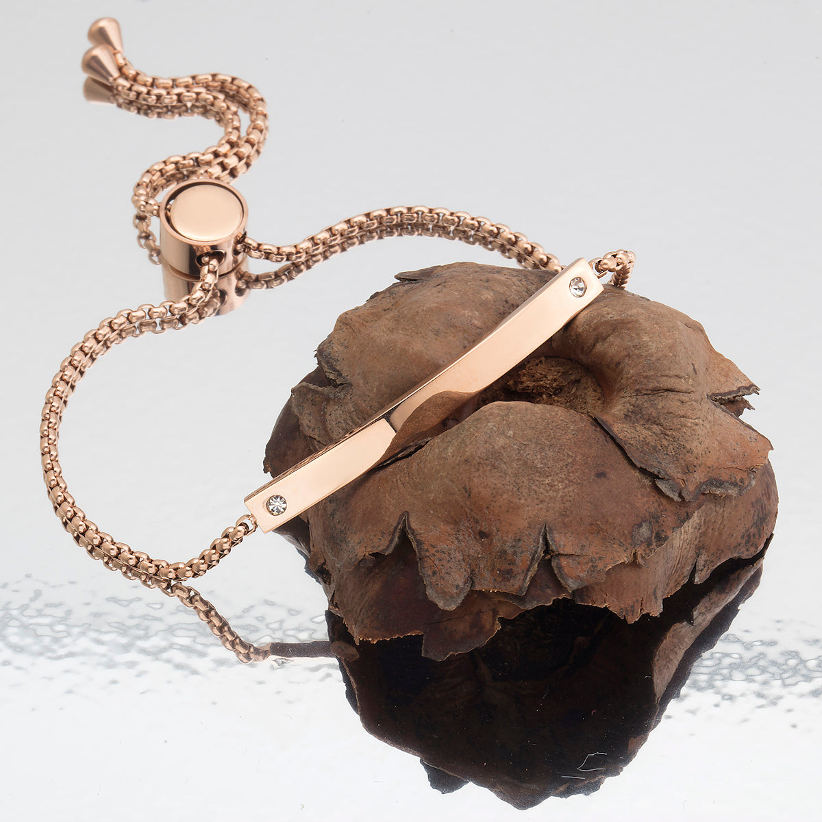 Elegantes Armband aus Edelstahl mit Gravurplatte in Rosegold.