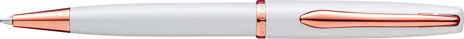 Der elegante Jazz Metall-Kugelschreiber zeichnet sich durch seine schwungvolle Linienführung aus, die leicht und lebendig wirkt. Das perlmutt-schimmernd lackierte Ober- und Unterteil harmoniert perfekt mit der im gleichen Farbton veredelten Spitze, Ring und Clip. Der Pelikan-typischer Schnabelclip ist federnd gelagert und dadurch besonders robust. Der Dreh-Kugelschreiber ist ausgestattet mit einer Großraummine mit nach ISO 12757-2 dokumentenechter Paste in der Schreibfarbe Blau.