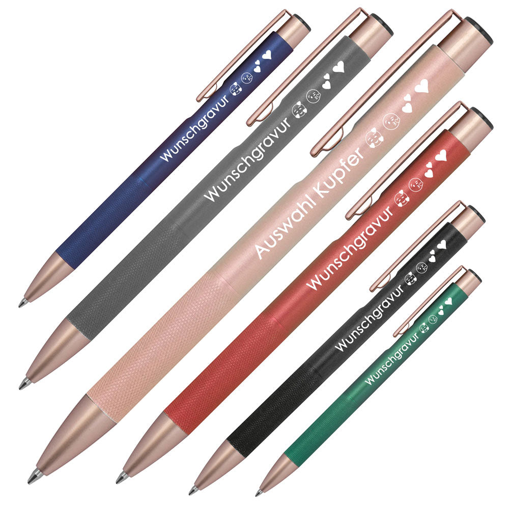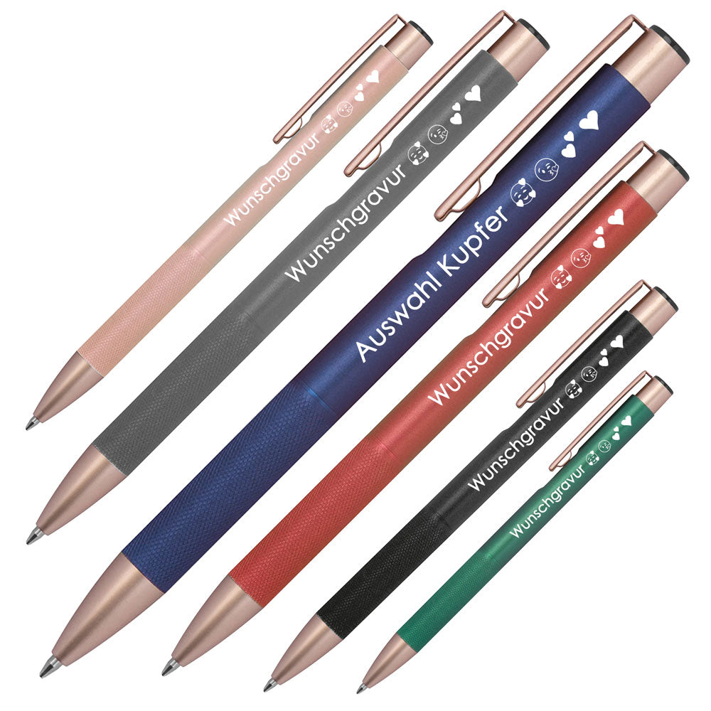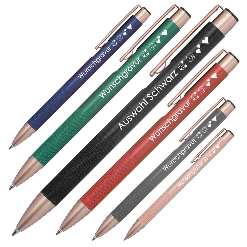 Mit einer individuellen Lasergravur wird jeder Stift zum Unikat — ideal für Firmenlogos, Slogans oder persönliche Widmungen. Der Gravurbereich auf dem Schaft bietet Platz für Ihre Botschaft (40 × 6 mm).