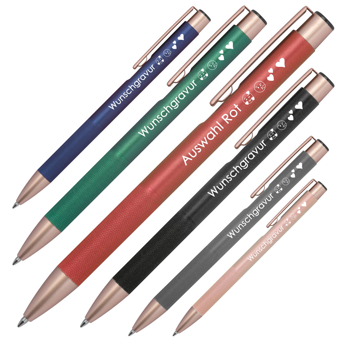 Mit einer individuellen Lasergravur wird jeder Stift zum Unikat — ideal für Firmenlogos, Slogans oder persönliche Widmungen. Der Gravurbereich auf dem Schaft bietet Platz für Ihre Botschaft (40 × 6 mm).