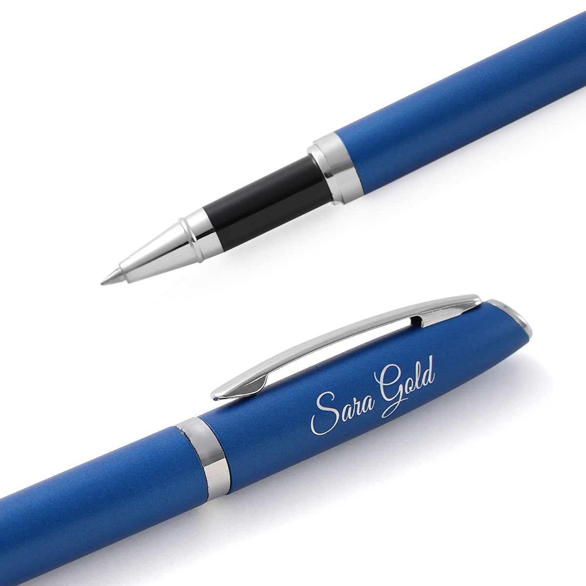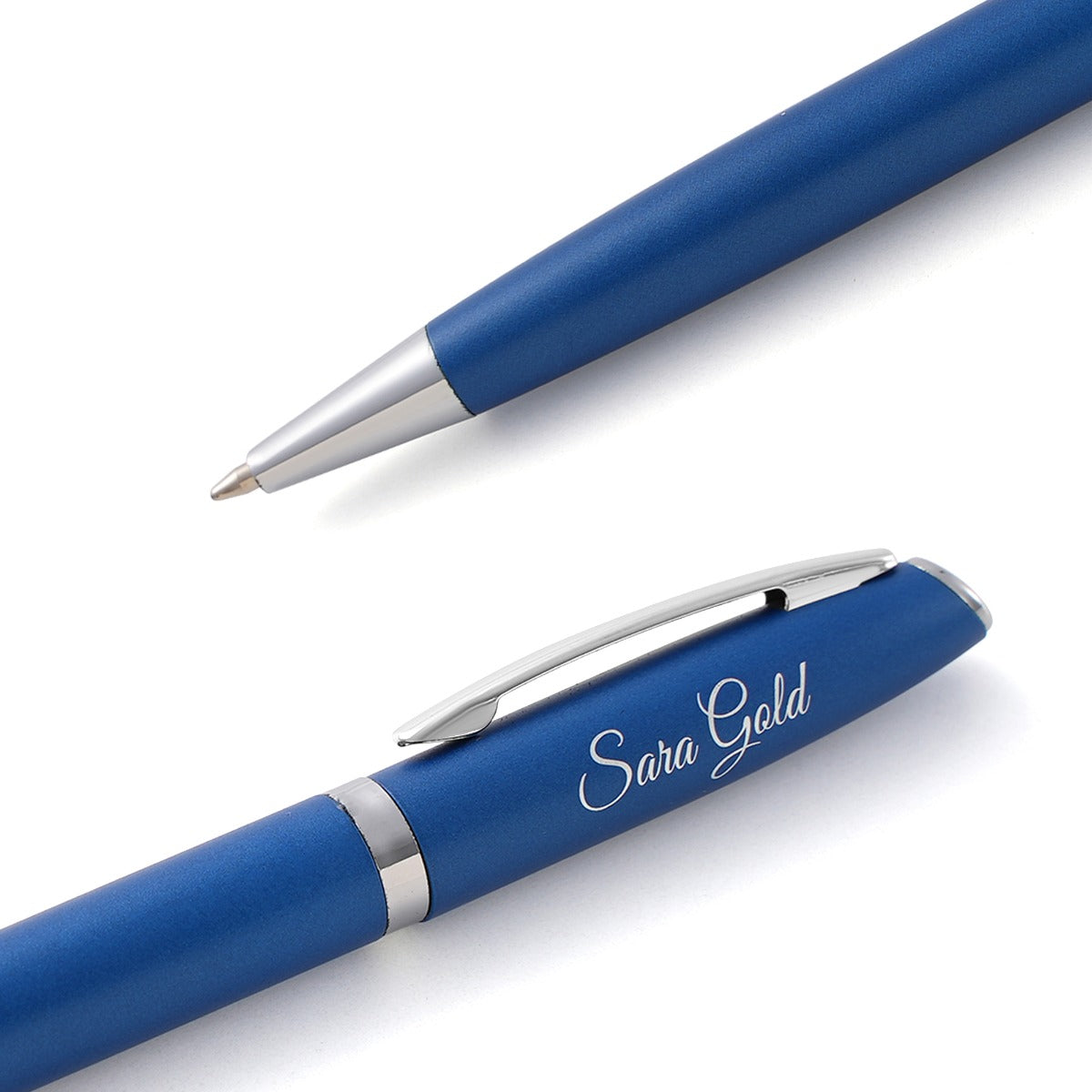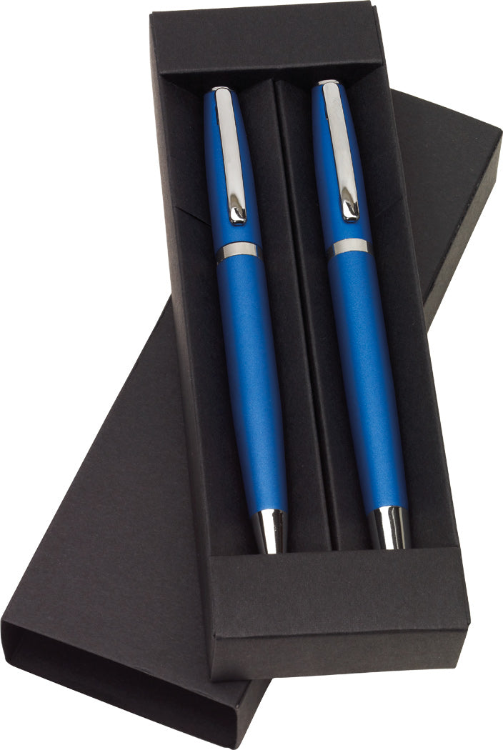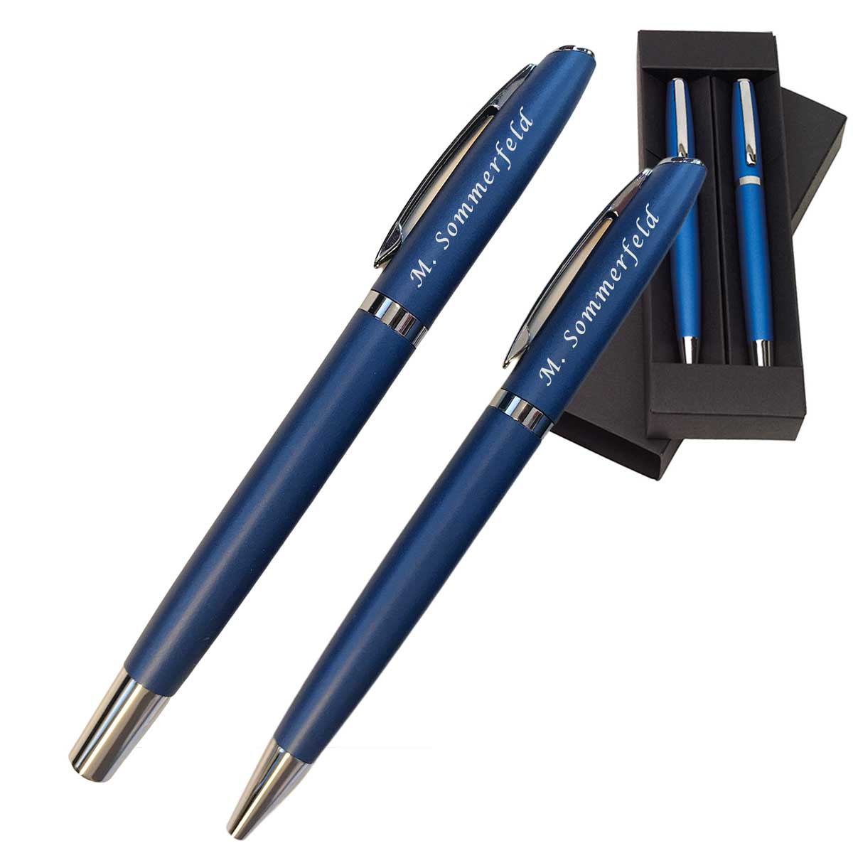 Schreibset in blaumit Ihrem Wunschtext gravieren lassen und verschenken. Das Schreibset besteht aus einem Drehkugelschreiber (schwarzschreibend) und Rollerball (schwarzschreibend). Die passende Geschenkbox ist dabei!