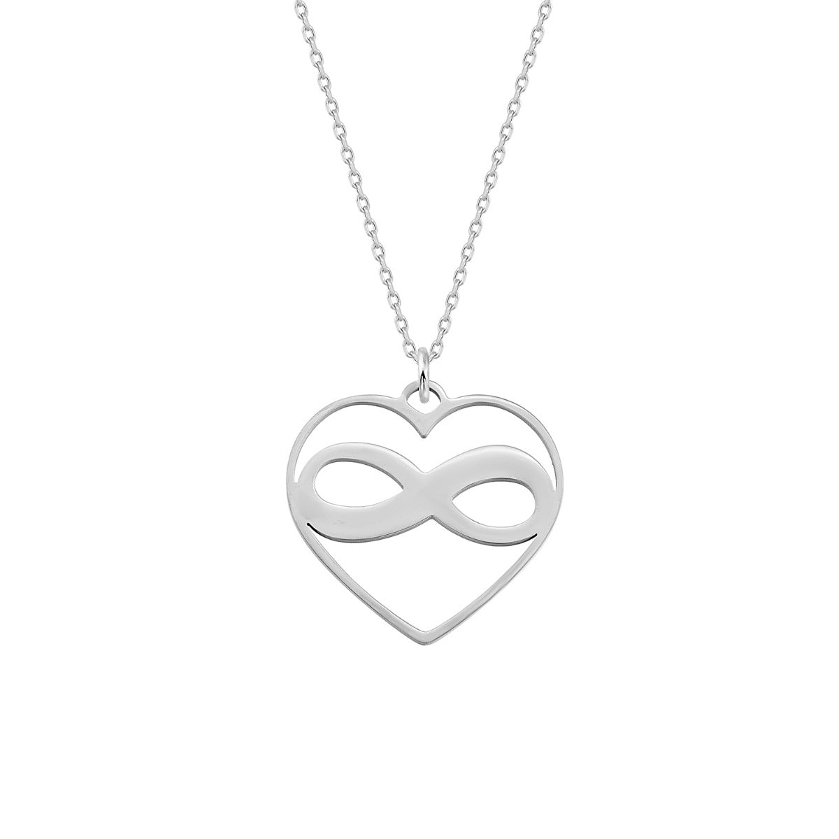 Eleganter Herzanhänger mit Unendlichkeitssymbol aus Edelstahl gefertigt.