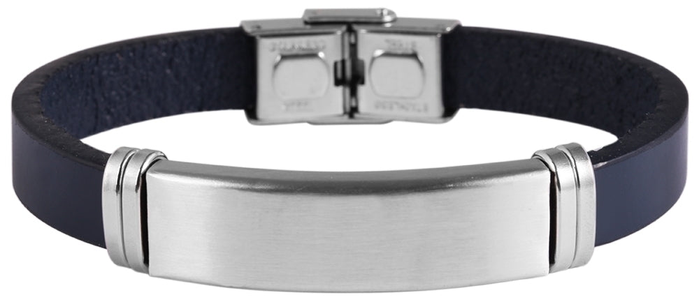 Unisex Armband aus echtem Leder und einer Edelstahl Gravurplatte für eine ganz persönliche Gravur.
