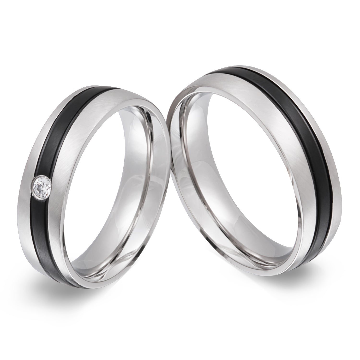 - 1x Damenring - Silber/Schwarz mit Weiß Zirkonia