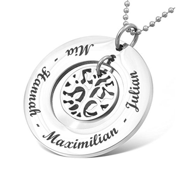 Familienstammbaum Kette Anhänger mit kostenloser Wunschgravur. Bis zu 45 Zeichen sind möglich.