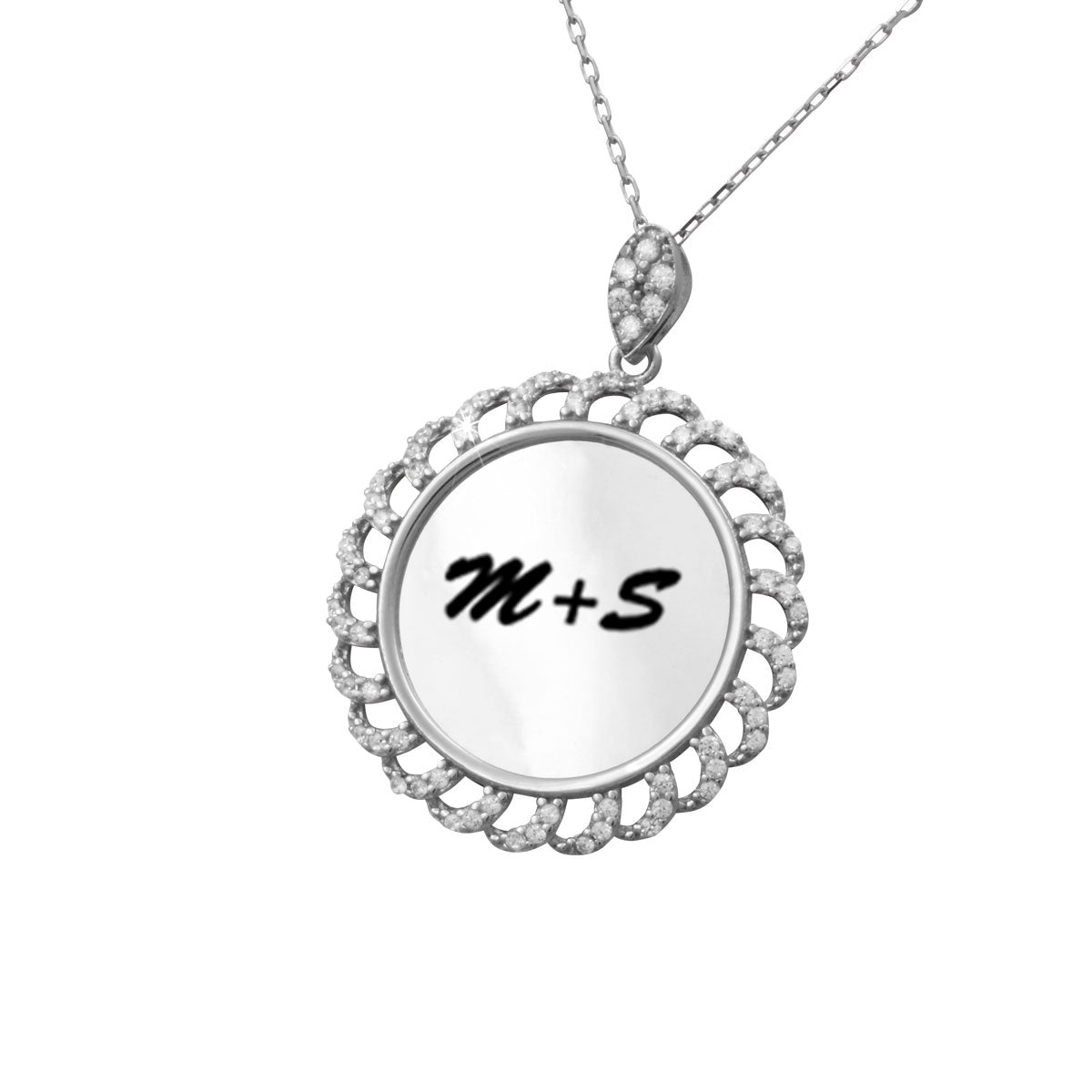 Der Anhänger hat die Form eines Kreises und ist mit vielen Zirkonia verziert.